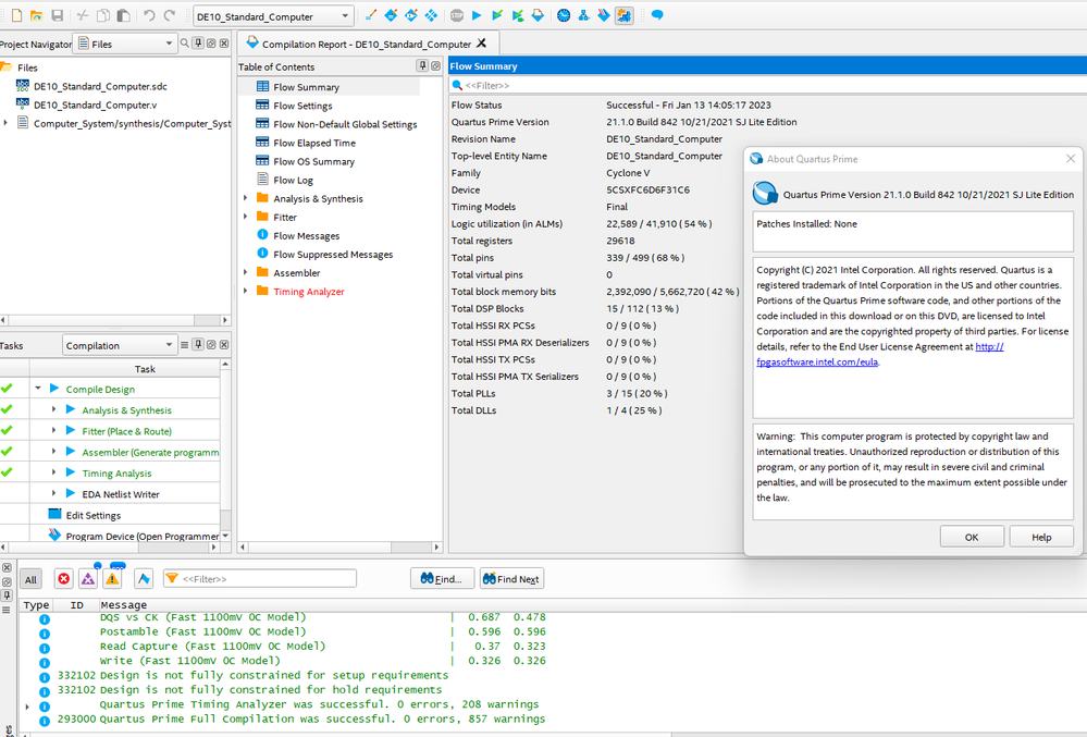I get the following error on Quartus Primte Lite when synthesizing the Intel DE10 Standard Computer FPGA: