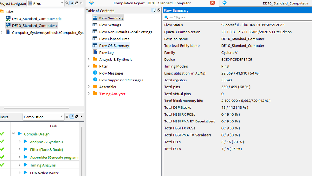I'm able to compile with the Quartus Lite v20.1 check image below: