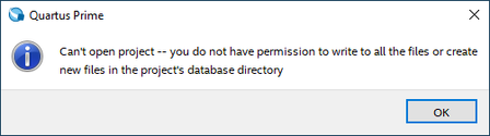 So I don't see how permission issues would affect just Quartus Prime. Note that I also tried moving the FPGA folder all around, even to the desktop, but nothing helps. Quartus just didn't like my PC.