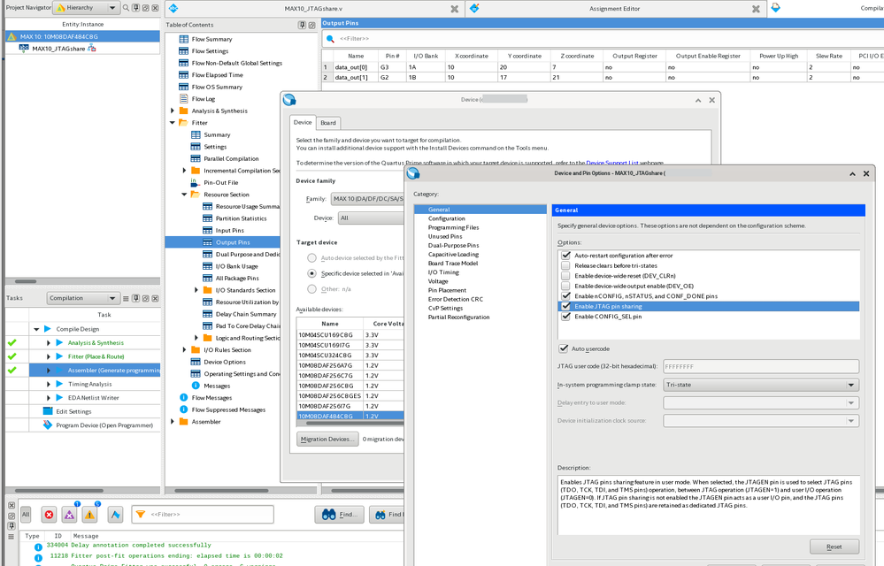 Can't place multiple pins assigned JTAG shared pins