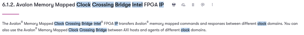 My question is: does Platform Designer provide an interconnect mechanism (similar to Xilinx AXI interconnects) that allows connecting AXI master and slave interfaces in different clock domains and automatically handles the required CDC logic? Or is explicit CDC handling required at the AXI slave interface level for this use case? Any guidance or best practices would be greatly appreciated.