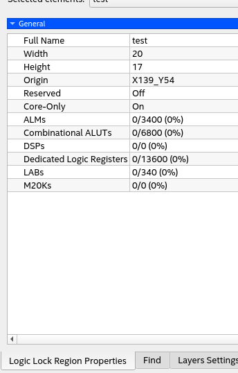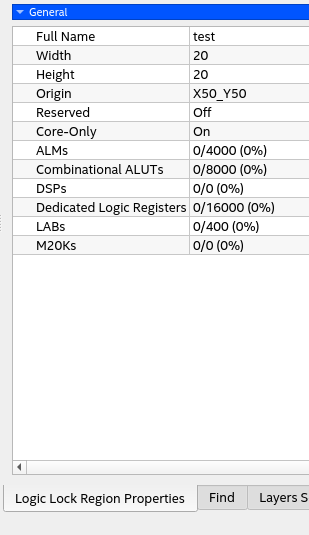 You can simply create logic lock region and assign them in module wise in hierarchy tab. Concern on not enough space for all the module intended in the region. - How can I know if there is enough space for all the module ? I don't have this information - Quartus doesn't show me this info.
