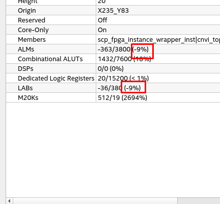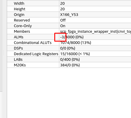 Hi I'd like to know how can I know how many resources exist in region lock that I choosen ? The property tab includes wrong values of DSP / M20K Do you have any user guide for it ?