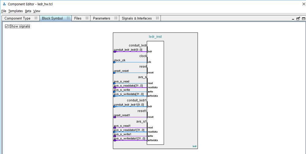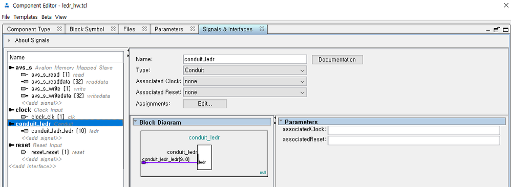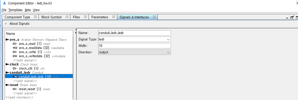 I want to create custom component that controls 10 LEDs on DE10-Lite board.