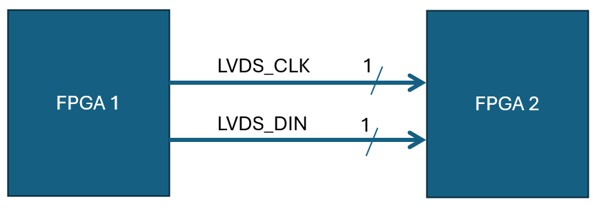 I am trying to send some data serially over a very simple SERDES interface made of a single LVDS clock and data going from FPGA 1 to FPGA 2.