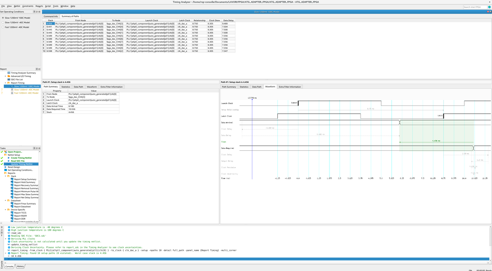 I'm building a 10-bit parallel output interface to drive a DAC. I'm using the oddr (ALTDDIO_OUT) registers so that all bits output simultaneously. 9 of the 10 bits are aligned, while one has an additional delay of about 2 nsec.