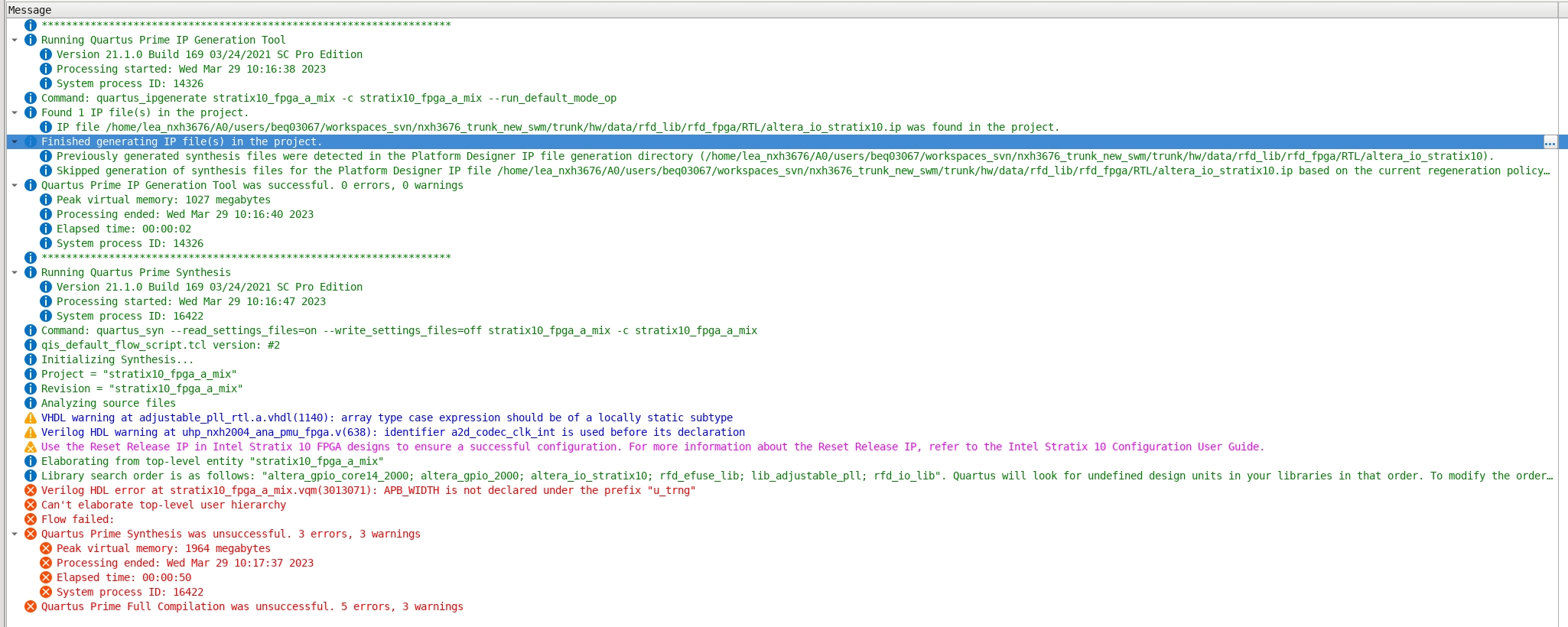 Quartus prime pro 21.1.0 error:
