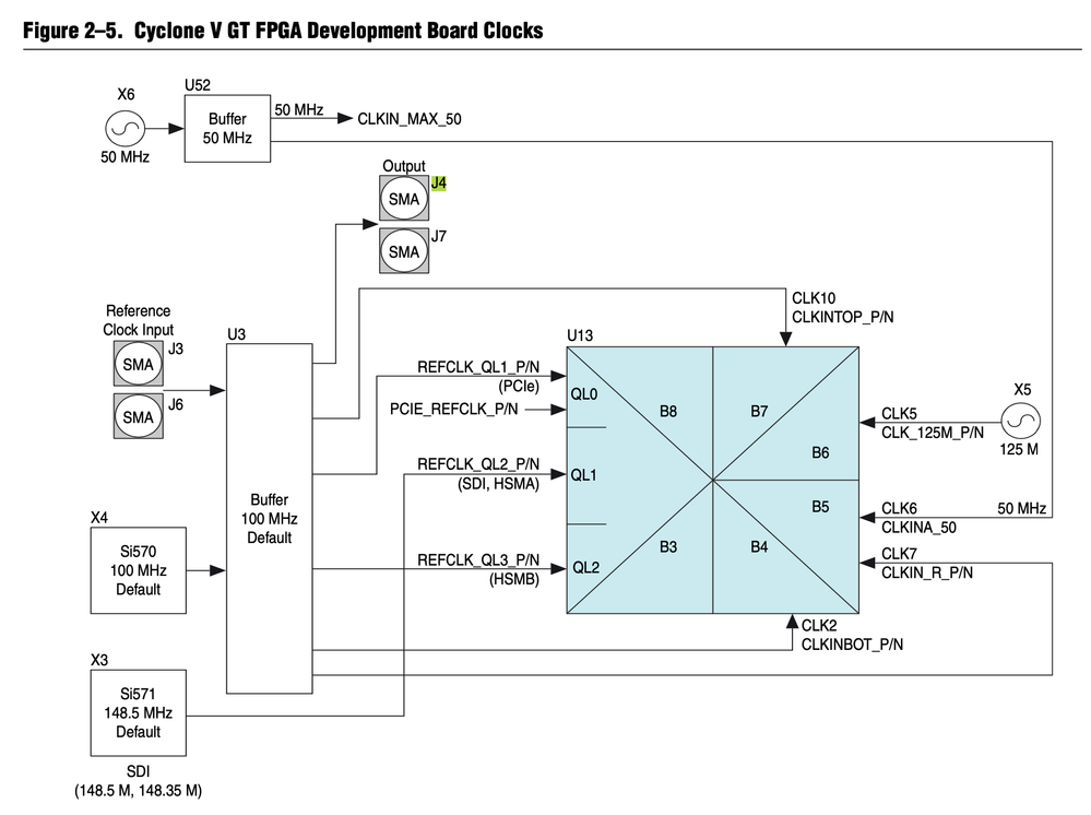 - Objective: To obtain 50MHz clock signal by using CycloneV (5CGTFD9E5F35) to output onboard crystal oscillator through phase-locked loop.