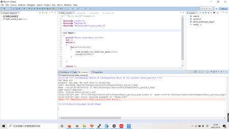 i use Quartus Prime Lite20.1 to invoke ecilpse, which has installed under the tutorial. i use a hello world model. When i start to build project, then i met the error:make: *** [Makefile:1011: hello...