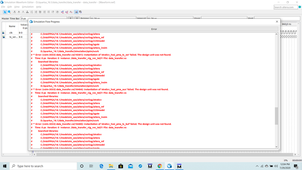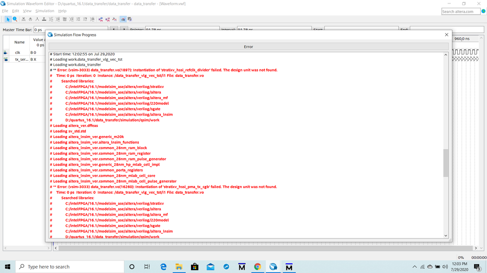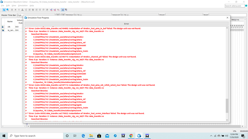 # ** Error: (vsim-3033) data_transfer.vo(16391): Instantiation of 'stratixv_hssi_pma_tx_ser' failed. The design unit was not found.