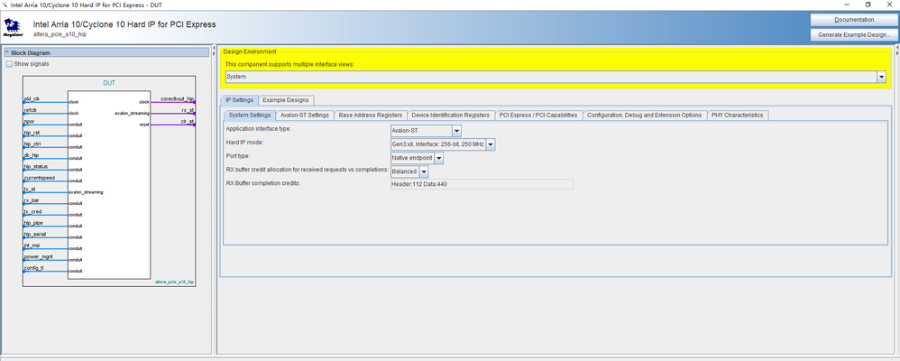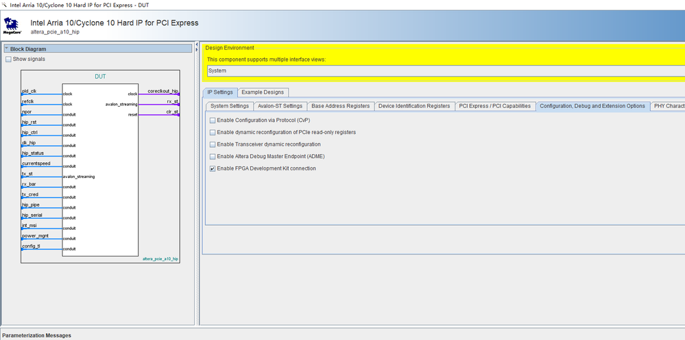 According to the user guide,i have generrated a A10 PCIe example design, the following figure is details about my configuration.