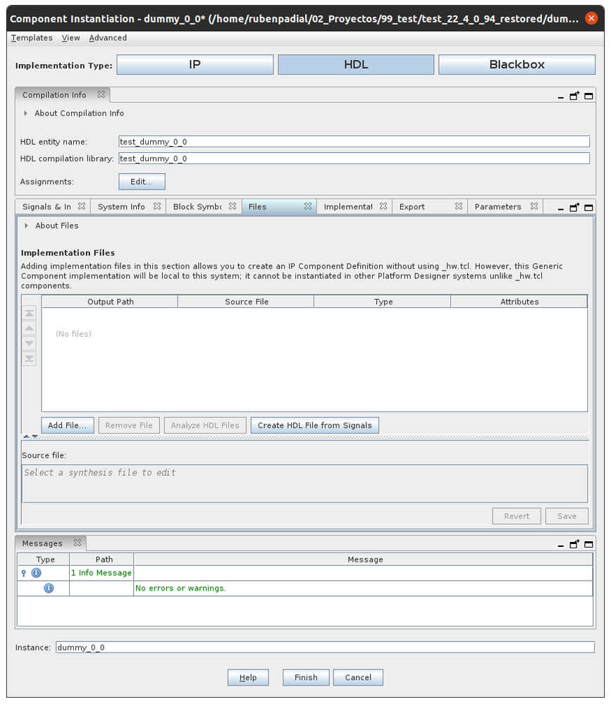 To create the dommy IP I have included a new component and defined the entity in vhdl, attached to this message and it was included to the HDL files of the component.