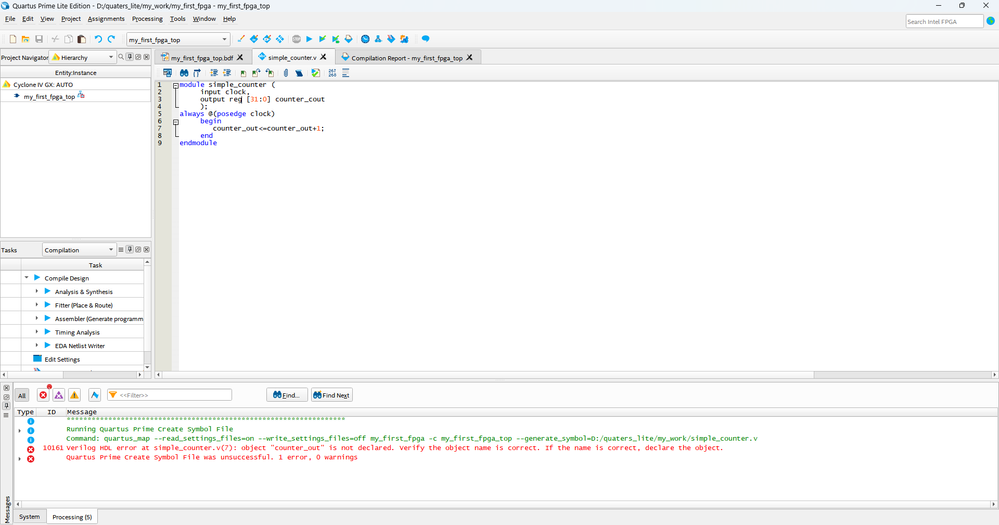counter_out is not declared, counter_count is declared. Please use the correct and same keyword for declarations.