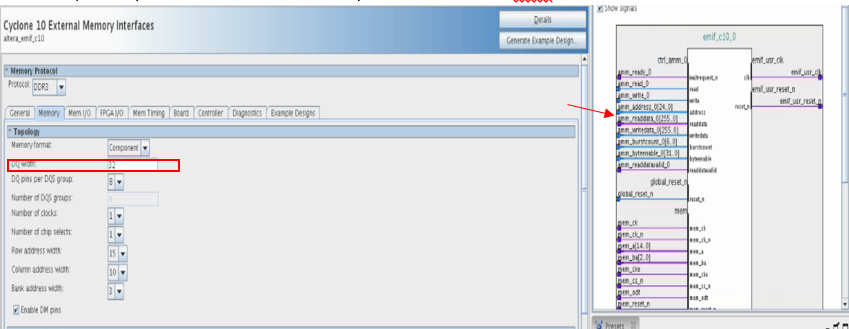 External memory Interface Intel Cyclone 10 FPGA IP configure DATA bus size from Avalon MM interface