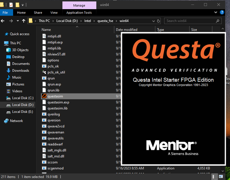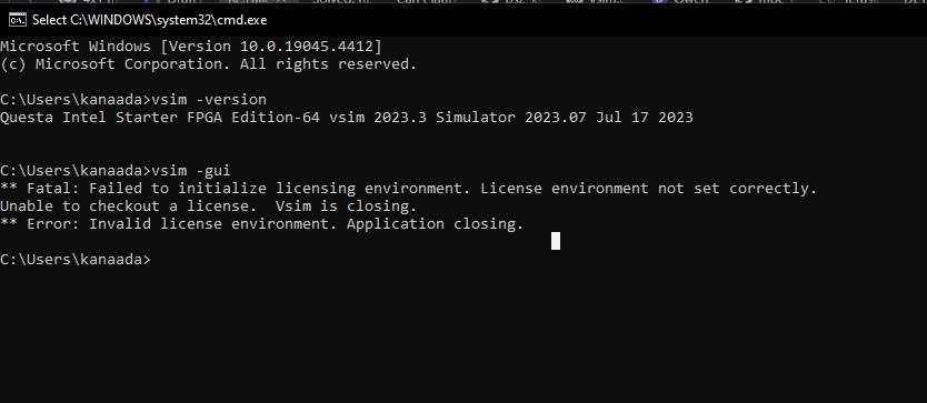 C:/IntelFPGA_lite/23.1std/questa_fse/win64/vsim.exe this did not work and after running the quartus # vsim -t 1ps -L altera_ver -L lpm_ver -L sgate_ver -L altera_mf_ver -L altera_lnsim_ver -L cyclonev_ver -L cyclonev_hssi_ver -L cyclonev_pcie_hip_ver -L rtl_work -L work -voptargs="+acc" tb_inv.v