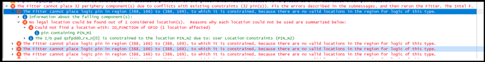 Also when I designed basic qsfp project without any IP, I can assign QSFP pins but during compilation this error occurs;