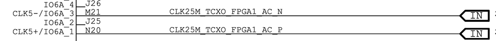 Below is physical connection. The CLK25M_TXCO_FPGA1_AC_P/N is differential clock generated by TCXO.
