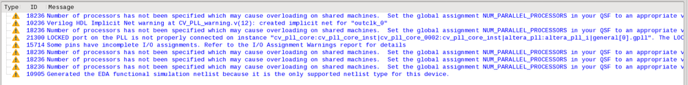 Warning (16305): Feedback path used by PLL(s) in location FRACTIONALPLL_X68_Y54_N0 was routed for regional clock compensation but the clock targeted for compensation was routed as a global clock
