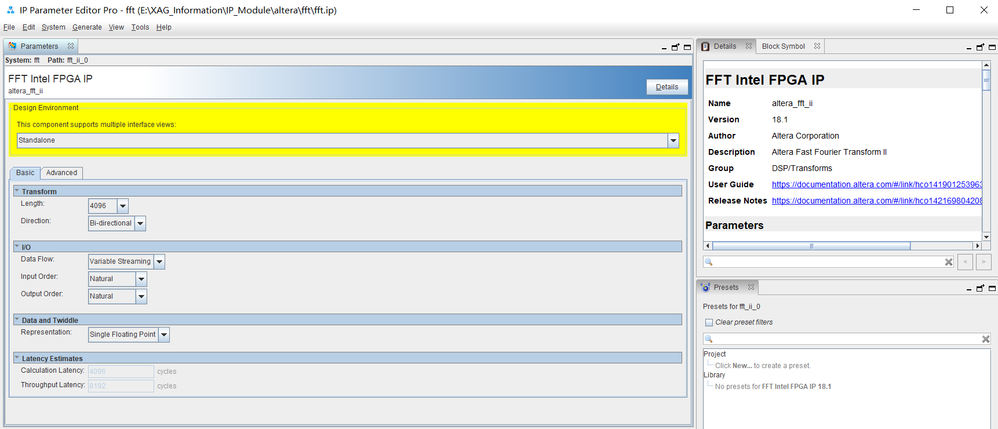 我的软件版本是 quartus 18.1 pro专业版,使用的是FFT IP核