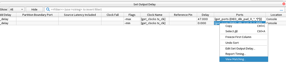 set_output_delay -add_delay -min -clock [get_clocks {tx_clk}] 0.000 [get_ports {DIE0_dib_pad_0_*_*[*]}]