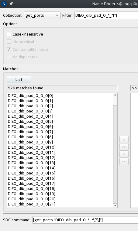 Alternatively, you can go to the Timing Analyzer GUI, View > Name Finder to check and experiment with collections using the wildcards.