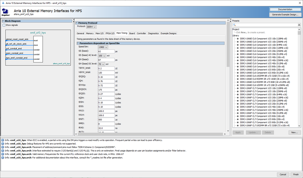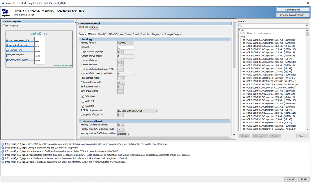 Error (175020): The Fitter cannot place logic ADDR_CMD_GRP that is part of Arria 10 External Memory Interfaces for HPS a10s_ghrd_altera_emif_a10_hps_181_lhjxj5y in region (148, 87) to (148, 99), to which it is constrained, because there are no valid locations in the region for logic of this type.