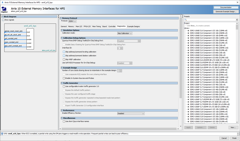 Screenshot of the EMIF IP configuration is attached here for reference.