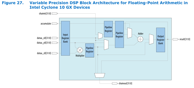 But it's essentially a question of hardware features. Description of DSP block architecture in Device Handbook clarifies that FP adder output is a 32-bit word, no features to recirculate a result with higher resolution as required by FMA.