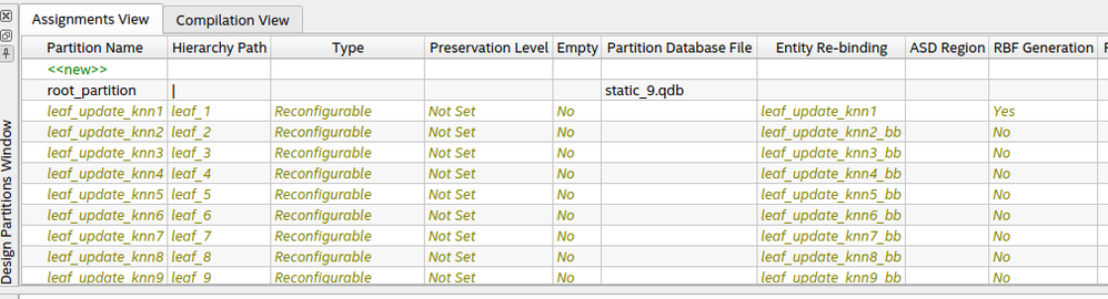 Once you have a .pmsf file for a partition, use Convert Programming Files to create a .rbf for it. Your workaround is saying that partition_2 is a SUPR (static update PR) region. Normally a .rbf file is created for a SUPR region even though you can't use that .rbf to PR a SUPR region during runtime (why it's call static). I guess I'm not sure what your goal is with (2).