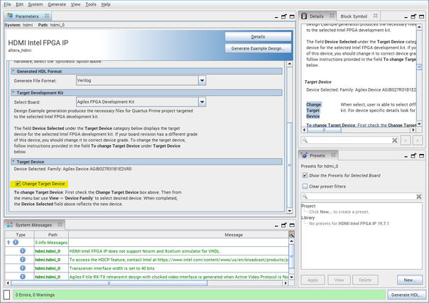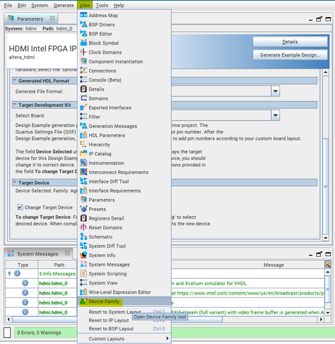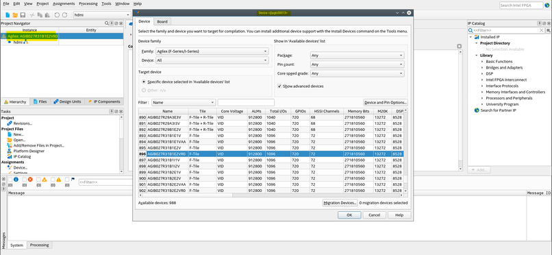 Do note if you change by option 2 with an IP already generated, in some cases, Quartus will require to perform device migration before compilation. This sometimes may lead to unintentional error due to different device, structure and settings.