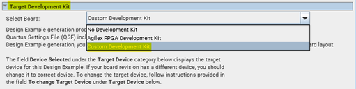 1.Once you open the IP parameter editor, you may need to change the "select board" option to "Custom Development Kit"