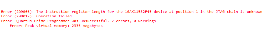Can you install the standalone Quartus Programmer nd then try. Also check the Jtag cable connectivity.