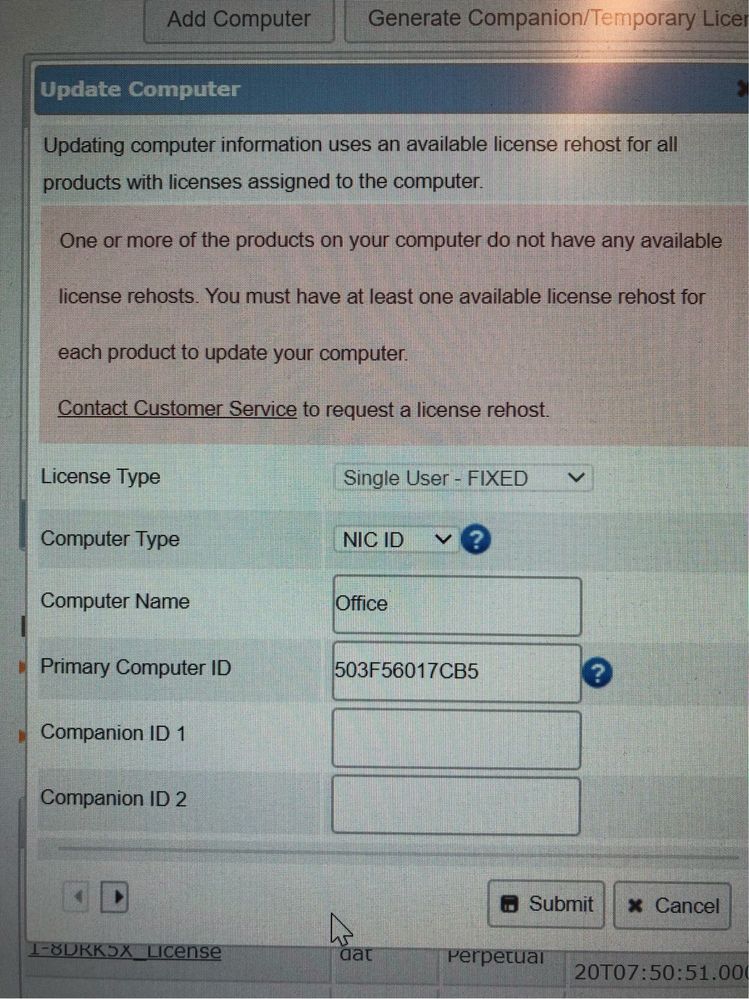 Thanks for your update. Your rehost quantity has been reset to 3 count. You can now regenerate again your license file in Self Service Licensing Center. Only the license administrator can re-generate the license file.