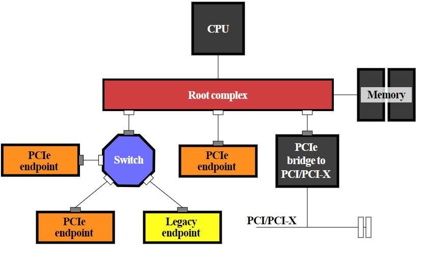 The PCIe subsystem does not have a Bridge unlike its predecessors the PCI bus. PCIe devices are of 3 types only - Root Complex (RC), Switch (SW) and EndPoint( EP). The RC is the only initiator in this subsystem , while the Switch behaves like a routing mechanism that routes TLPs to devices (EP) on the downlink. EndPoints are typically implemented in devices such as Ethernet, SoundCards, etc..