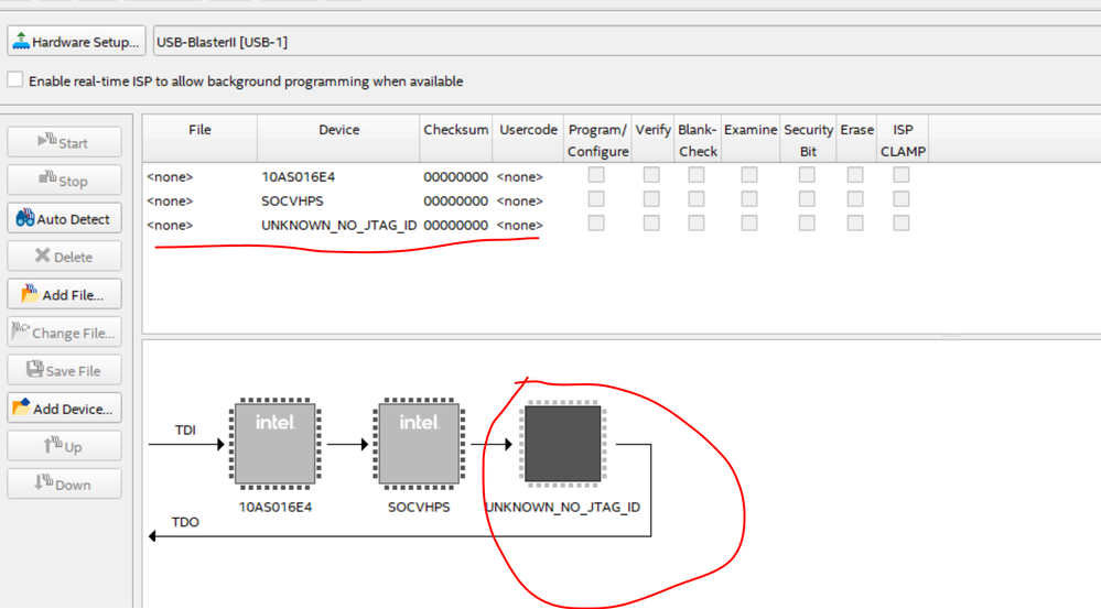 i am using quartus prime pro 23.4, and i connected the JTAG of the ethernet PHY chip on my board into the jtag chain for BSCAN usage. but now when l tried to detect the jtag chain in the programmer, an "UNKNOWN_NO_JTAG_ID"device is detected and i can't program the jic file into the flash, so i want to know how can i bypass this device in the jtag chain so that i can program the jic file into the flash ?