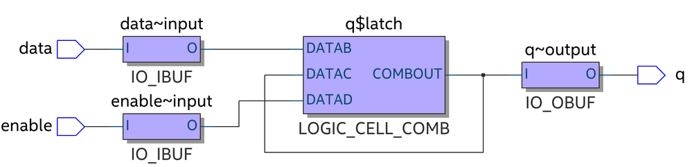 When I looked at the circuit I generated using the latch primitive in the Resource Property Editor, it consisted of LUTs instead of Programmable Registers, which I didn't expect. And the Latch Type was "latch".