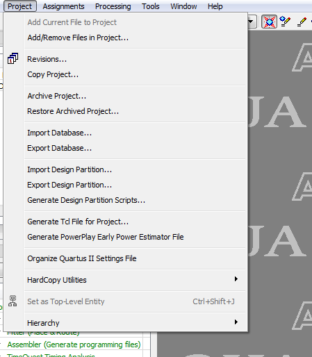 There is no option as clean project in the Quartus II software. Here is the screenshot of the project menu options. Can you help me to find out?