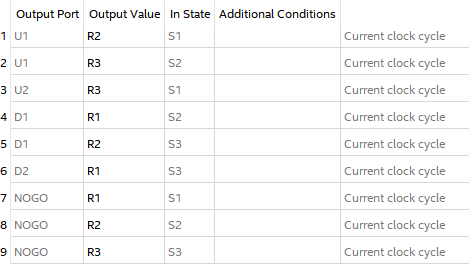 Error (154039): State S2 contains multiple transitions, but more than one transition equation are TRUE when ~R2 & R3 & R1 | R2 & ~R3 & R1 | R2 & R3. As a result, the next state cannot be decided.