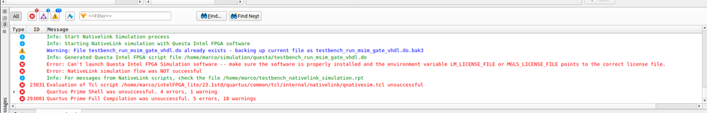 Error: Error: Can't launch Questa Intel FPGA Simulation software -- make sure the software is properly installed and the environment variable LM_LICENSE_FILE or MGLS_LICENSE_FILE points to the correct license file.