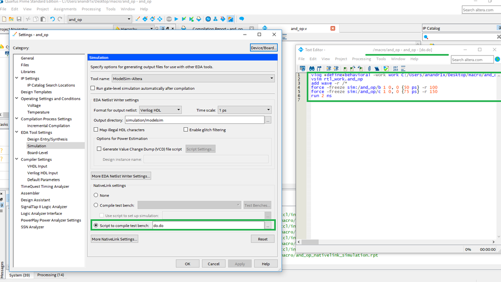 Which will launch Modelsim and run simulation for the enabled macro.