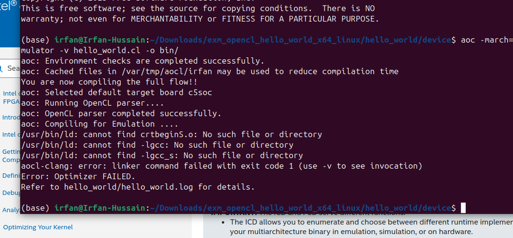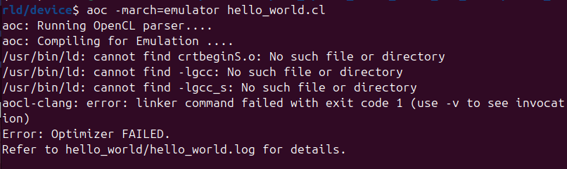 - there should be a sample design available somewhere in the following path (<path_to_exm_opencl_hello_world_x64_linux_<version>>/hello_world), can you please try compiling that instead.