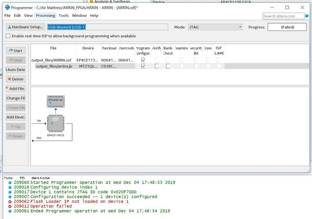 May I know if you select programming the FPGA and the Flash at the same time? Could you share the screenshot of the Quartus Programmer GUI?