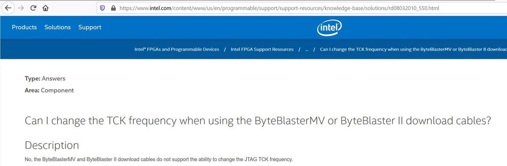 May I know if you are able to reduce the TCK clock frequency to 6Mhz? May I know which Quartus version are you using?