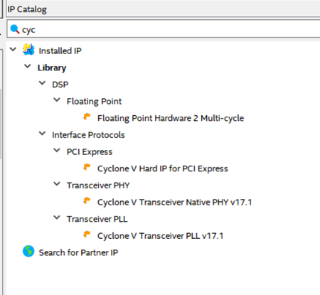 APras18New Contributor6 years agoI am unable to see Cyclone V Transceiver Native PHY IP in Platform Designer whereas it's available in Quartus. It's 17.1 tool version. Attached are the snapshot for reference. How can I enable the above mentioned IP in platform designer? Quartus Platform Designer Show More