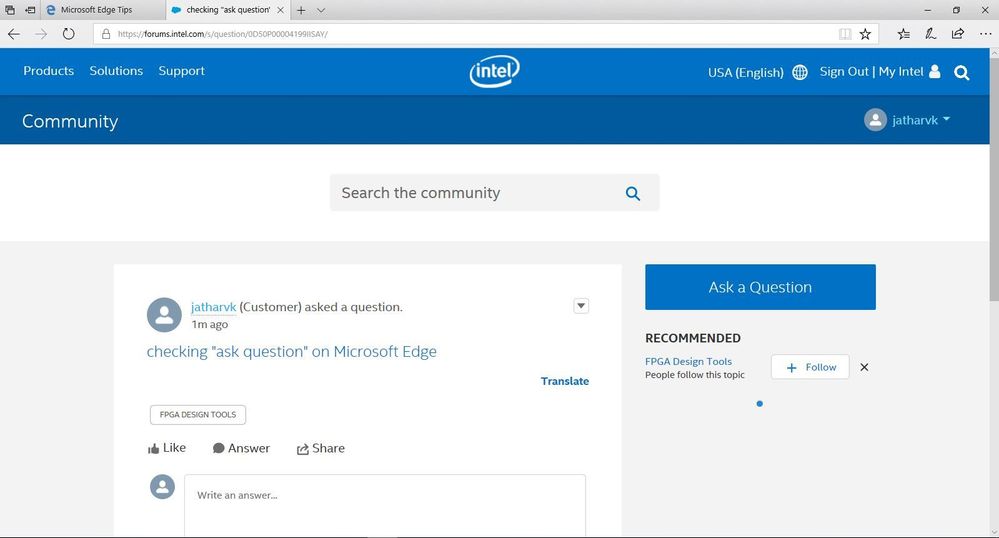 We can post/handle the question in Intel community using Microsoft Edge so it`s not an issue with Microsoft Edge it may be at your end.