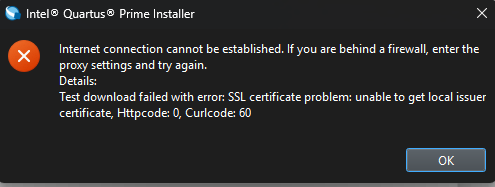 Installer cannot establish connection with SSL error