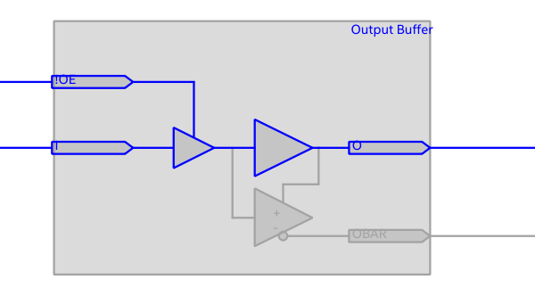 "The bubble is to indicate the inversion to compensate for the active low oe port of the obuf. So, what you see in the tech map view is actually correct."