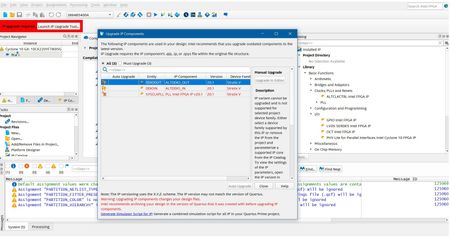 5 years agoThe PLL is easy: as stated, you have to delete the PLL from your design and add in the new one. I believe it's named IOPLL Intel FPGA IP.