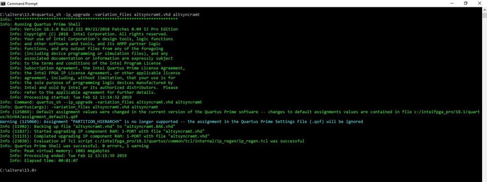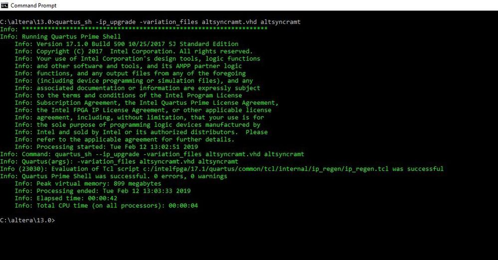 quartus_sh --ip_upgrade -mode all test_headerresult
