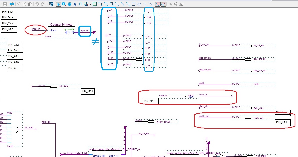 Hello, In ElectricPiano_00_00, LPM_COUNTER has no problem at all. 50MHz input, 1/50 divided, 1MHz accurate output. OK. However, there is a problem with the array of four synchronous counters (74160). The output of the 4th counter does not output at the designed frequency. There is an error in the simulation result, and there is also an error in the actual board output. Below is my post on the forum. - Below - " Right now I'm using version 19.1 only. We found clues that differed between the function of the schematic and the simulation result. As below. Like Schematic, inst7 (TFF) should be triggered on X3 output to be normal. However, in the currently simulated wave picture, inst7 (DFF) was triggered on X2. In the PIN_F12 terminal of the board, 261Hz is output if it is normal as in the schematic, but the current 522Hz signal is actually doubled. Why are they different from the schematic and simulation results? I have attached the current project folder. " Thank you.